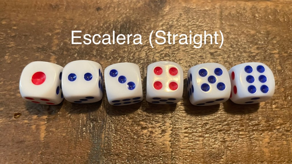 Tier 2 (Pong Gan) requires an Escalera (Straight) of 1-2-3-4-5-6, or a Double Half — two sets of triplets.